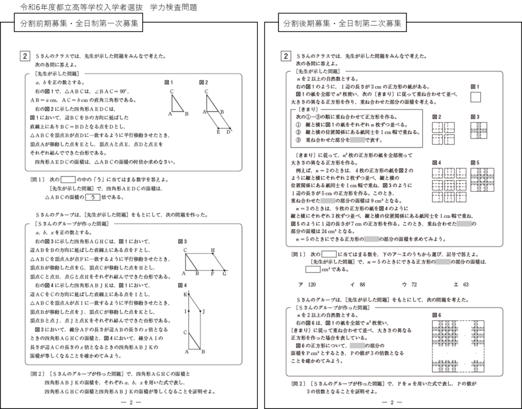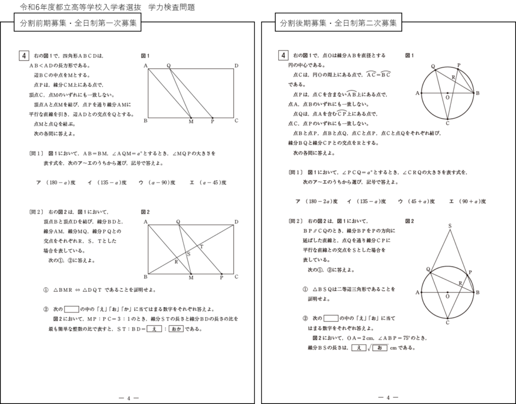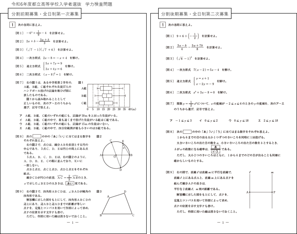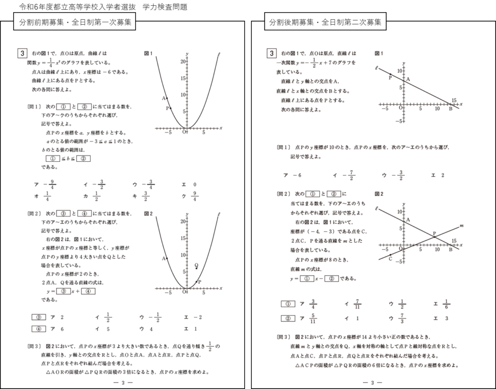 都立高校入試の数学は、一部の学校を除いて同じ「共通問題」を使用します。